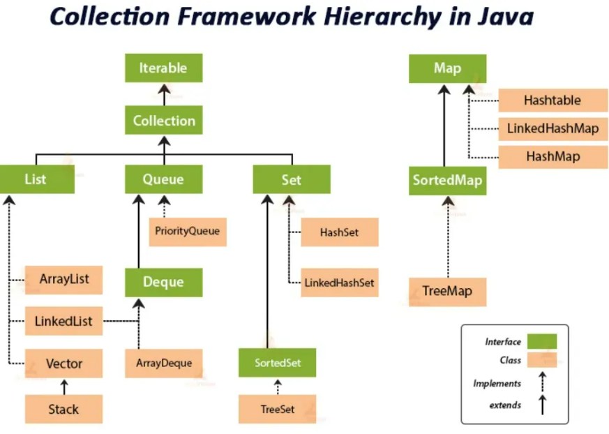 - 구현 클래스: ArrayList, LinkedList, Vector, Stack, Queue..