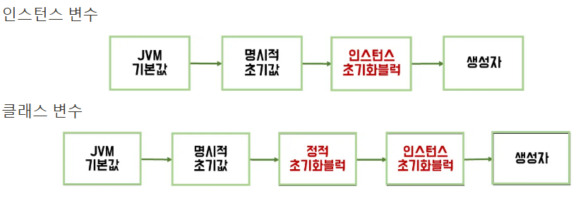 - 생성자보다 인스턴스 초기화 블럭이 먼저 수행된다.