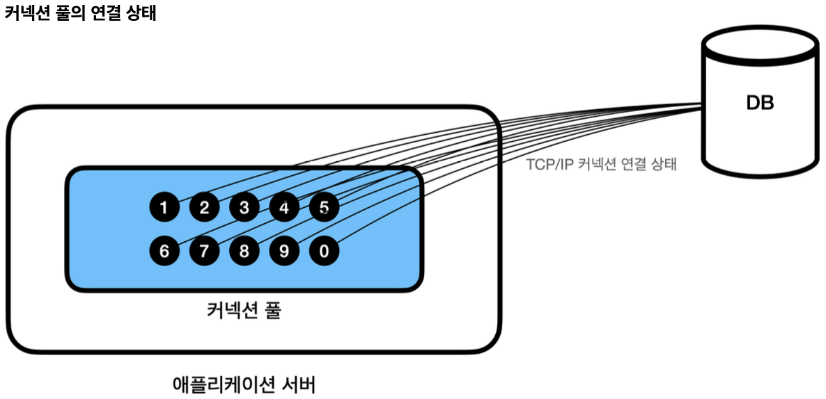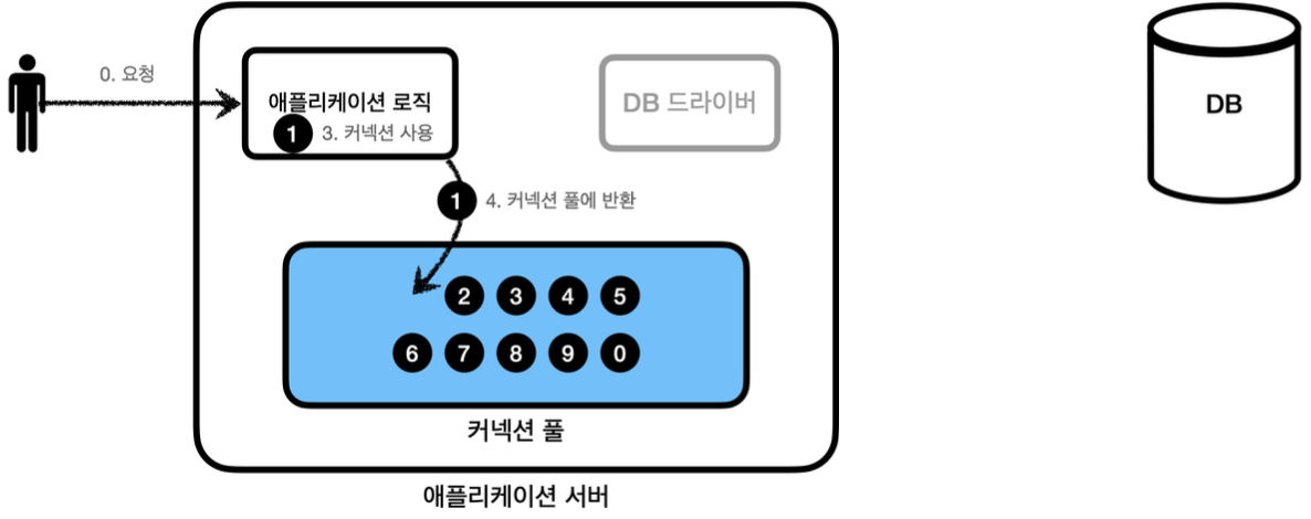 - → 이후 DB 연결이 필요한 상황이 오면, 풀에 있는 커넥션을 꺼내서 재사용한다.