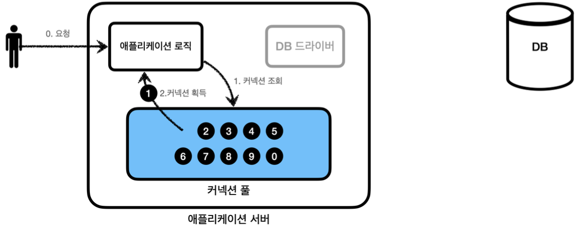 - 애플리케이션 로직에서 DB 드라이버를 통해서 새로운 커넥션을 획득하는 것이 아니라,