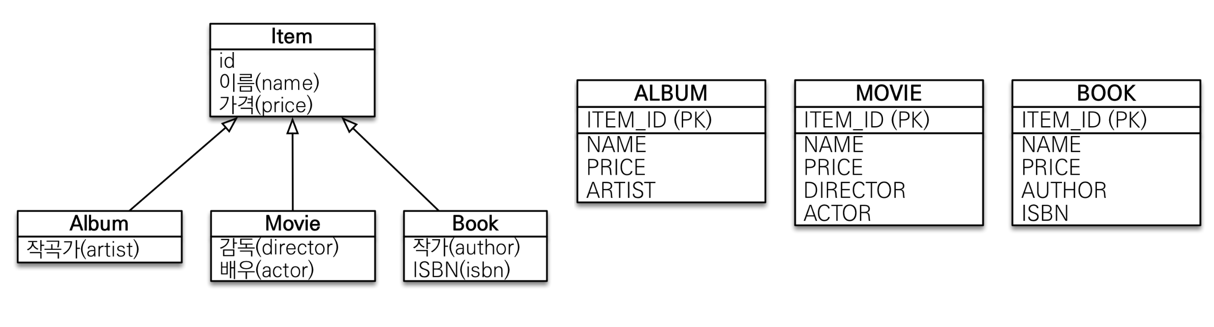 - TABLE_PER_CLASS: 구현 클래스마다 테이블 전략