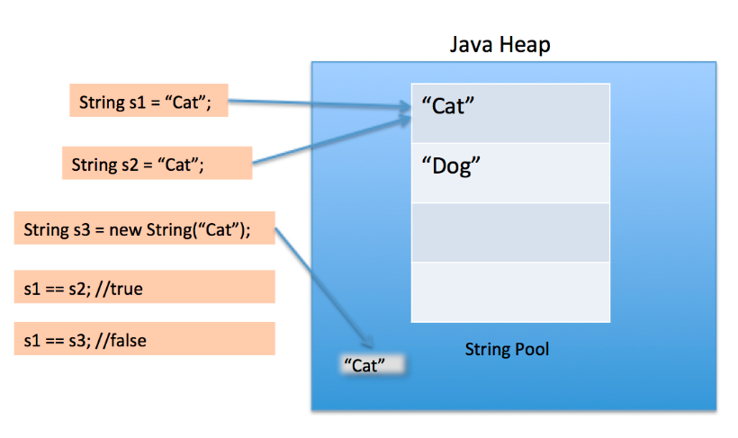 System.out.println(c == d); // false (새 객체 생성됨, 객체 주소 비교)