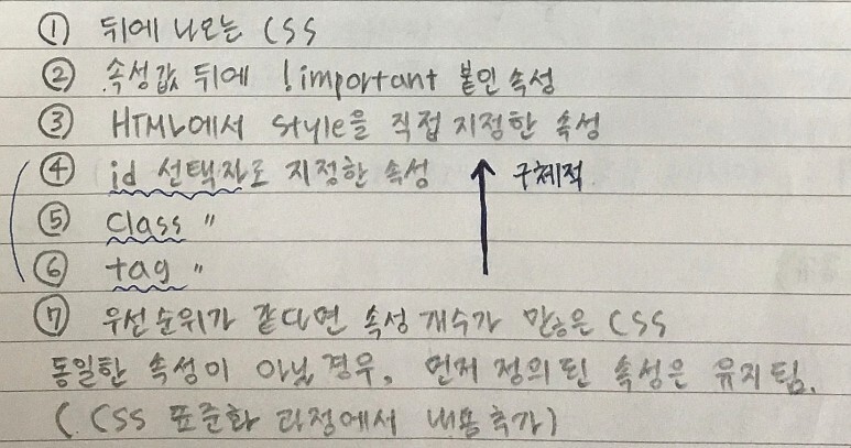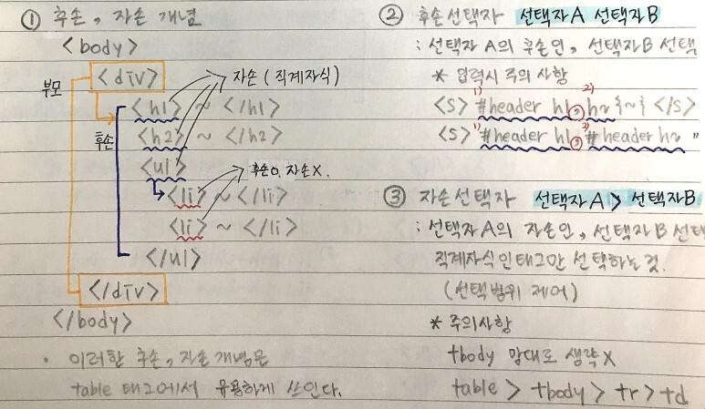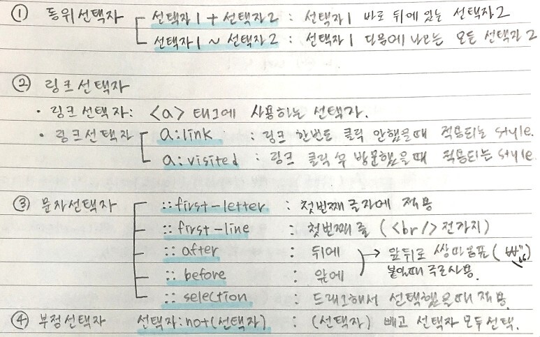 - 선택자 적용 순서: 먼저 body를 지나면서 태그들에 지정된 속성을 적용 -> 나머지에 전체 선택자의 속성 적용