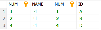 그러나 table_1과 table_2 테이블에서 동일한 컬럼명 num을 찾아 자동으로 조인