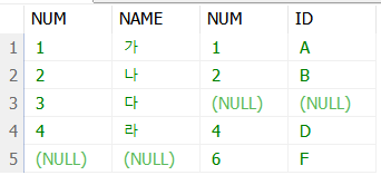 FULL JOIN table_1 t2 --OUTER 생략가능